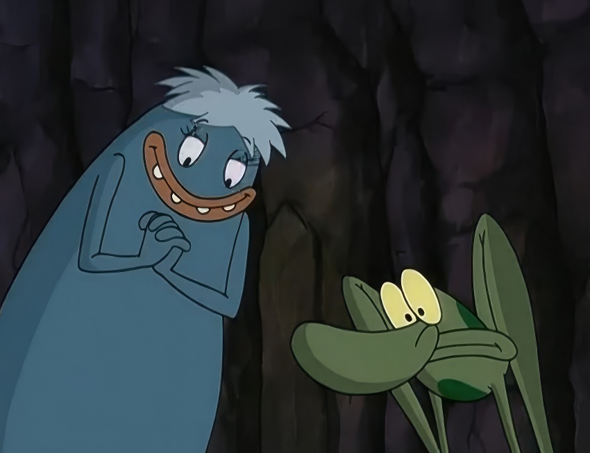 Приёмные родители Котопёса оказываются двумя странными существами: огромная мохнатая мама, похожая на синюю йети-сосиску, и носатый папа-жаба с вечно кислой миной. Они рассказывают, что нашли необычного малыша у своей пещеры и растили его как родного, пока однажды не налетел вихрь и не унёс ребёнка прочь. С тех пор они искали его по всему свету. И не могли найти.
