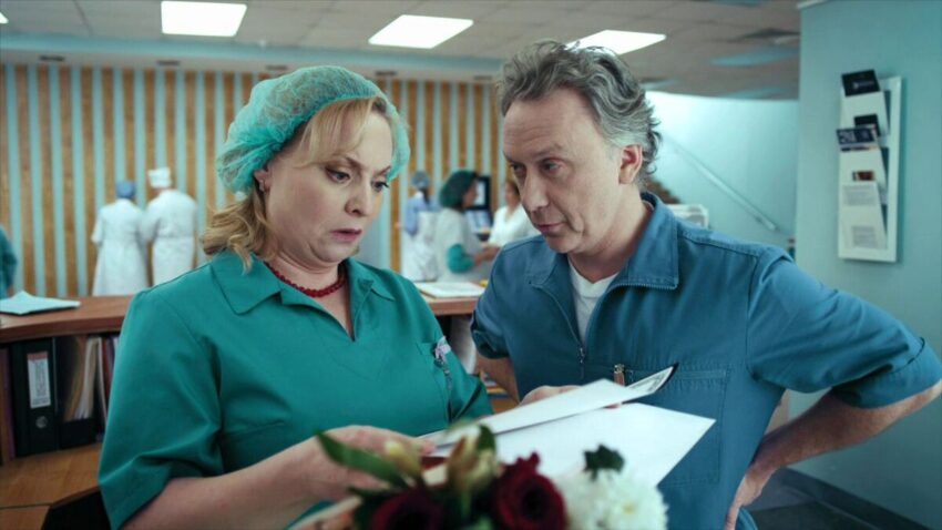 Именно Купитман вытаскивает Быкова из депрессии, пристроив его консультантом на «Ленфильм». И это самый смешной момент финала: там снимают сериал про врачей, и Быков фактически переписывает сценарий, опираясь на свой опыт. Благодаря рассказам из его практики киношное отделение проктологии превращается в венерологию, а врач-грузин становится евреем-алкоголиком. По сути, Быков и Купитман начинают создавать сериал про самих себя. Ирония высшего уровня!