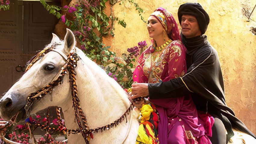 Сестра Саида и Мохаммеда, которая вечно жаловалась на свою горькую долю и мечтала о принце, тоже находит счастье! Она буквально улетает в закат (на крылатом коне вместе со своим возлюбленным Миру). Конечно, это была метафора её богатой фантазии, но в реальности она действительно уезжает с ним, перестав быть просто «надзирательницей» для братьев.