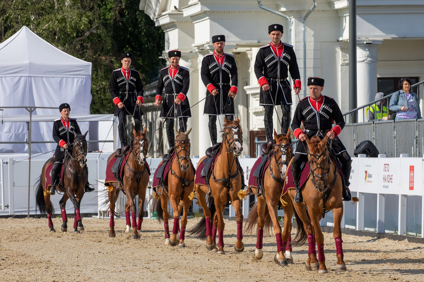 В 16:00 на большом поле Выводного круга состоится официальная тренировка членов сборной России по джигитовке перед чемпионатом мира по этой дисциплине, который состоится 25 и 26 августа на ВДНХ.