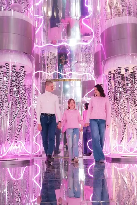 Пространство занимает 3 уровня и включает 18 залов и более 100 фотозон. Гостей окружают световые инсталляции, масштабные декорации и фантастические сцены, которые постоянно меняют восприятие пространства.