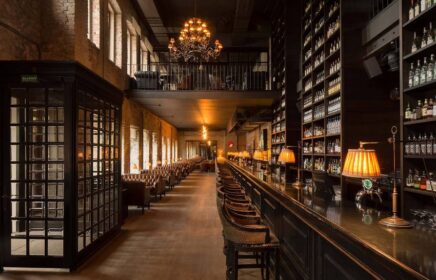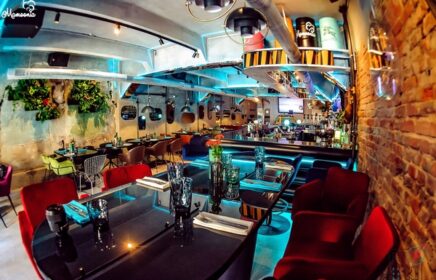 Интерьер здесь заслуживает отдельного внимания. Стены, окрашенные в цвет маренго, глубокие массивные кресла и диваны, лаконичные деревянные столы создают обстановку аутентичного английского клуба в фешенебельном районе Лондона, где нет места суете, а свободная посадка обеспечивает комфортную приватность. В то же самое время барная стойка приглашает громко обсудить с приятелями итоги последних спортивных событий или поболеть за любимую команду.