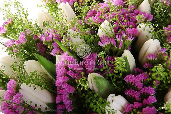 В «ЦветокТорг» можно приобрести готовые букеты и флористические композиции. В ассортименте розы, тюльпаны, ирисы, хризантемы, альстромерии, герберы, гиацинты, лилии, гипперикумы и лизиантусы. Пионов, гвоздик и ромашек в продаже нет.