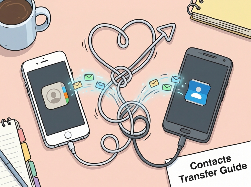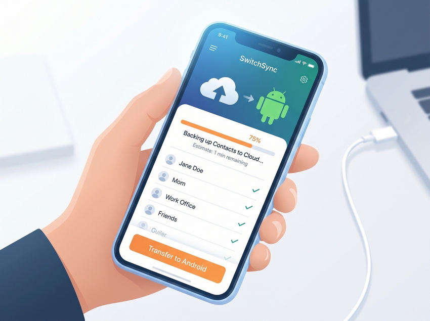 Для переноса контактов и пр. нужен кабель с разъёмами USB Type-C ↔ Lightning (для iPhone 14 и старше) либо USB-C ↔ USB-C (для iPhone 15 и новее).