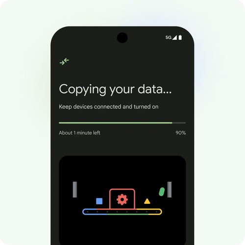 Порядок действий: включаете новый Android, вставляете сим-карту, подключаете Wi-Fi, входите в Google-аккаунт, настраиваете биометрию. Система сама предложит перенести данные со старого телефона - тут соединяете устройства кабелем. Выбираете, что именно копировать, жмёте «Копировать» и ждёте. Кабель не трогаем и iPhone тоже не блокируем, он должен оставаться активным до конца.
