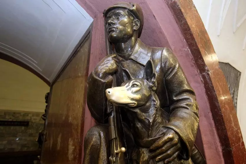 Много вопросов вызывает прототип самой знаменитой скульптуры станции – «Пограничник с собакой». Обычно пишут, что моделями для нее были знаменитый Никита Карацупа и его верный Индус.