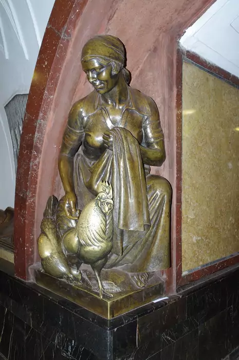 Всего на станции 76 скульптур. Сначала их было 80, однако позже из-за сооружения гермозатвора четыре пришлось снять. Все художественные образы, увековеченные в бронзе, повторяются: 18 – по четыре раза и еще 2 – дважды.