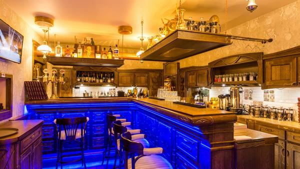 В баре-ресторане можно заказать блюда русской, японской и итальянской кухонь.