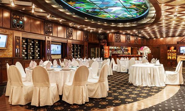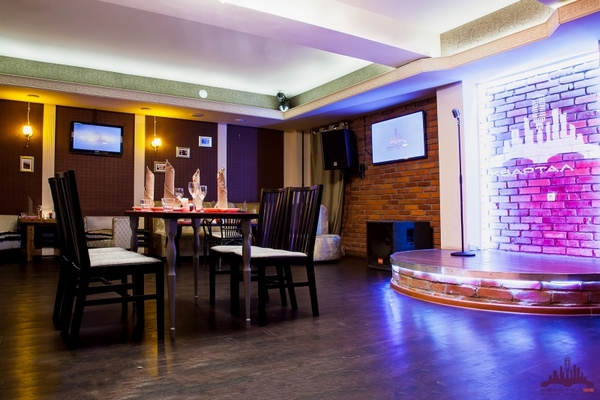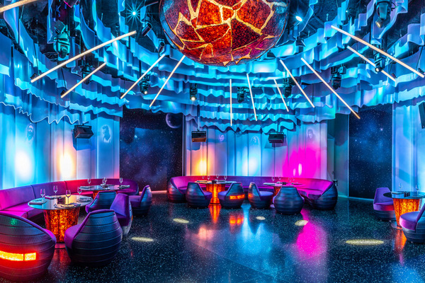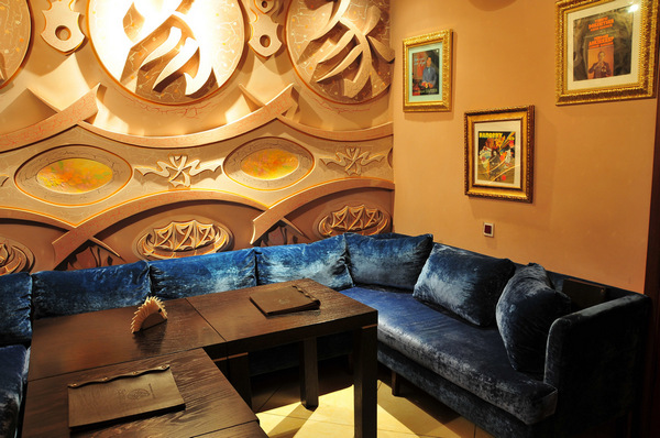 Гости размещаются на комфортабельных диванах перед сценой, к их услугам танцпол, кинозал, бар. В ресторане посетителям предложат изысканные блюда и напитки.