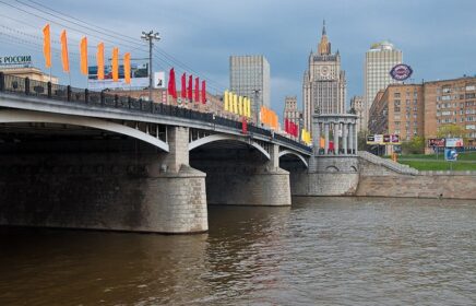 А предыстория моста такова. В Средневековье Москва-река была здесь неглубокой, мелководной и через нее переправлялись вброд. Начало сооружения плотины и Водоотводного канала в 80-е годы XVIII века значительно подняло уровень воды. Это обусловило потребность в устройстве моста, к строительству которого приступили в 1789 году. Он представлял собою деревянную наплавную конструкцию и именовался Никольским. Просуществовал мост немногим менее столетия и обветшал. На смену пришедшему в негодность сооружению по проекту инженера городской управы В.К. Шпейера построили новый металлический мост. А уже в 30-е годы, в советский период при проведении работ по реконструкции города появился новый висячий мост, насчитывающий три пролета. Его длина без малого составляет 700 м, а ширина – 38,5 м.
