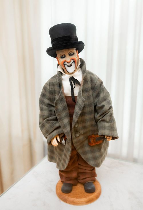 Светлана Геворкян работает с деревом. Материал сложный: требует выдумки, терпения, точности. Тем интереснее смотреть на её персонажей: Пьеро, клоунесса, клоун Грок. Последний – реальный персонаж, знаменитый король клоунов.
