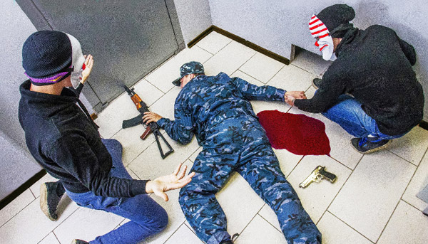 Ограбить банк — задача для прирождённых аферистов. Охранник куплен с потрохами, в отличие от своего честного напарника. Но ваша команда позаботится, чтобы он ничего не заметил, верно? Сумка с купюрами и слитками лежит у выхода из хранилища. Пора выбираться из здания — водитель уже ждёт вас и свою часть добычи.
