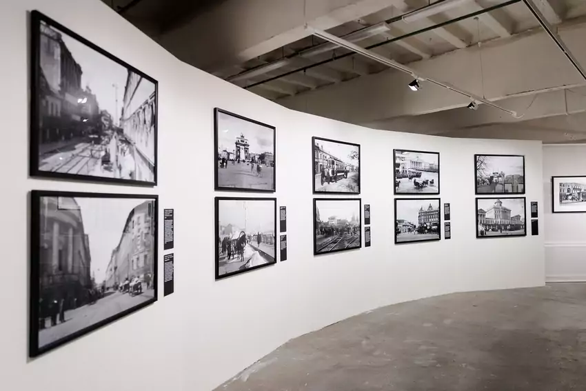 Экспозиция охватывает множество знаковых мест и событий. Например, прокладка трамвайных путей на Триумфальной площади, Тверской и Арбате в 1900-х. Или уникальный памятник архитектуры – Сухарева башня, снесённая в 1930-х, и рынок у её подножия, который кипел жизнью по воскресеньям. Показаны и сцены у Брестского (ныне Белорусского) вокзала: кто встречал приезжих, какие экипажи были в ходу – от простецких «ванек» до щеголеватых «лихачей».