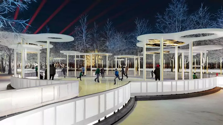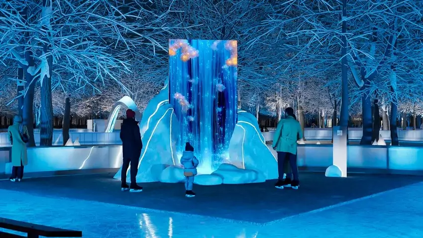 Мультимедийные инсталляции размещены вдоль всего пространства, создавая маршрут для тех, кто хочет познакомиться со всеми технологическими новинками. Ледовые дорожки соединяют основные зоны катания и выходы из павильонов, обеспечивая удобную логистику перемещения. Рестораны и кафе работают по всему периметру - можно в любой момент сойти со льда, перекусить и вернуться обратно.
