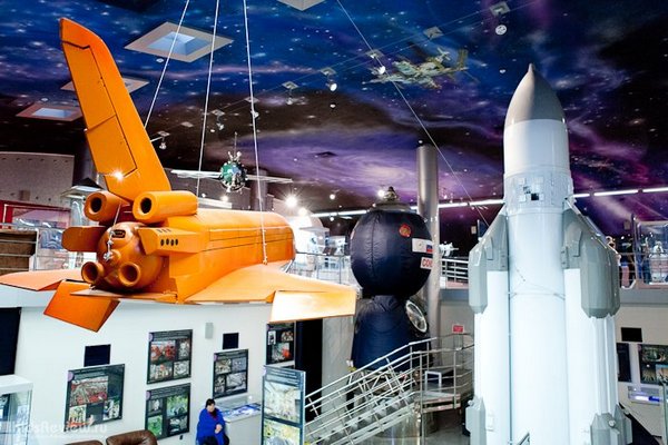 В числе наиболее интересных экспонатов – фрагмент станции «Мир», – в нем «смельчаки» могут почувствовать себя покорителями космоса; макеты искусственных спутников Земли и космических станций,  ракет-носителей, орбитальных кораблей, космических капсул; чучела легендарных Белки и Стрелки; луноход, еда в тюбиках и пр.