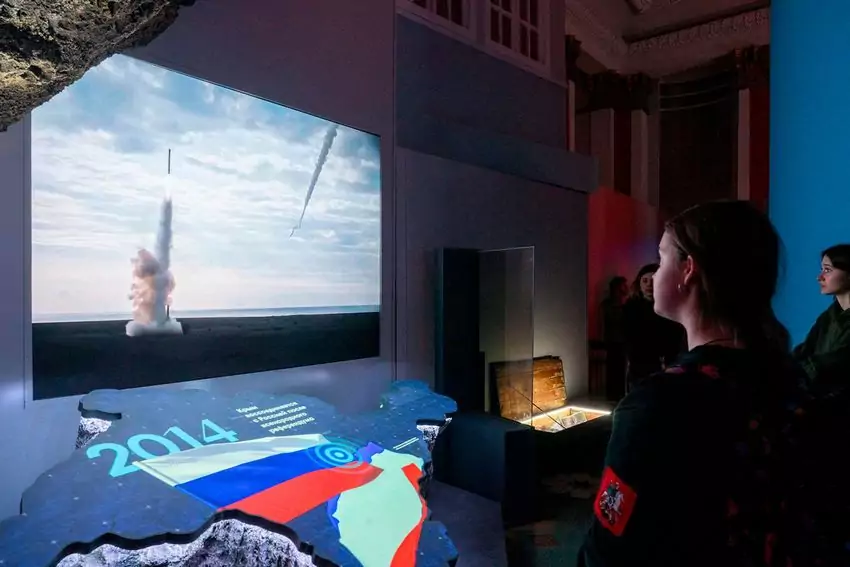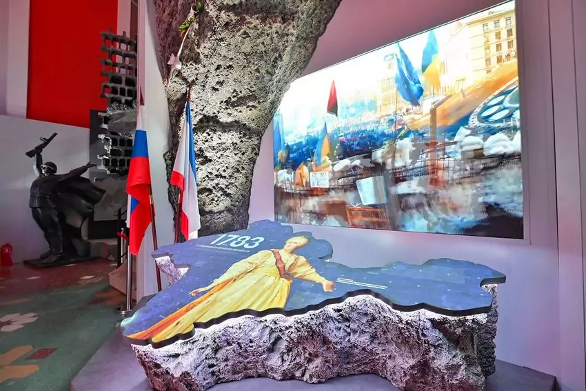 Одна из ключевых зон экспозиции посвящена Крыму и событиям 2014 года. Здесь собраны документы, фотографии и видеоматериалы, иллюстрирующие путь полуострова к возвращению в состав России. На интерактивной карте показаны вехи крымской истории — от победы в войне с Османской империей до освобождения от немецко-фашистских захватчиков в 1944 году.