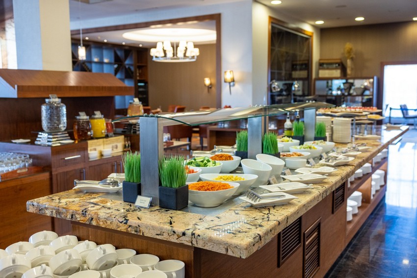 В стоимость проживания входят завтрак, обед и ужин в основном ресторане гостиницы по системе «шведский стол», включая безлимитный алкоголь. Также постояльцы бесплатно проходят в бассейн, получая полотенце и лежаки, занимаются в тренажерном зале.