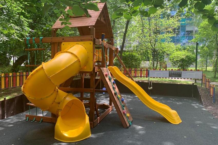 Для юных гостей подготовлена игровая площадка на свежем воздухе, оснащенная качелями, горками и лестницами.