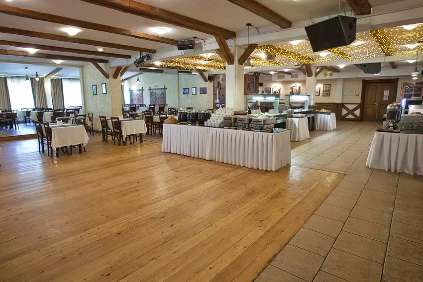 В цену номера входит «шведский стол» утром и в обед, место на парковке, анимационные программы. Постояльцам доступно плавание в бассейне или отдых в джакузи, катание с горок, посещение термального комплекса. За дополнительную плату предоставляются услуги SPA-салона и веллнес-студии, банного комплекса, организуются экскурсии, конные прогулки, рыбалка. На территории работает прокат настольных игр, музыкального и спортивного инвентаря, квадроциклов. Можно арендовать мини-поле для футбола, площадку для волейбола, теннисный корт с профессиональным покрытием, пострелять в лучном или арбалетном тире, сыграть в дартс.