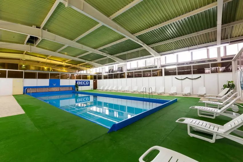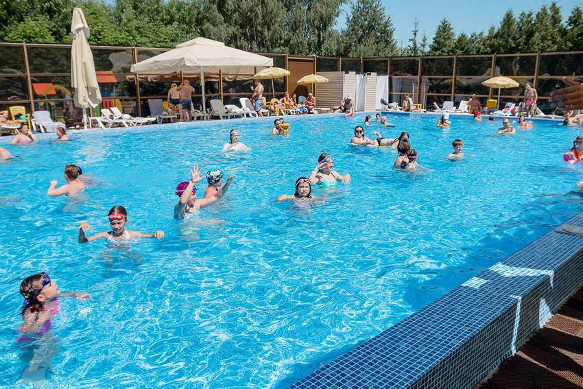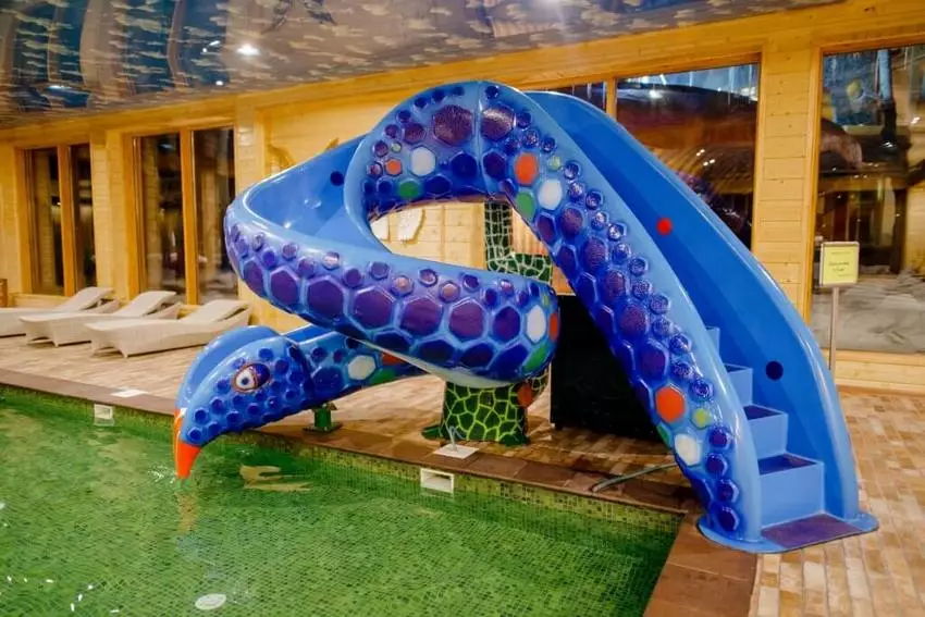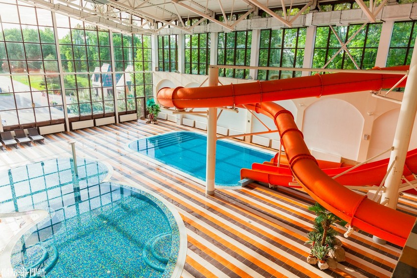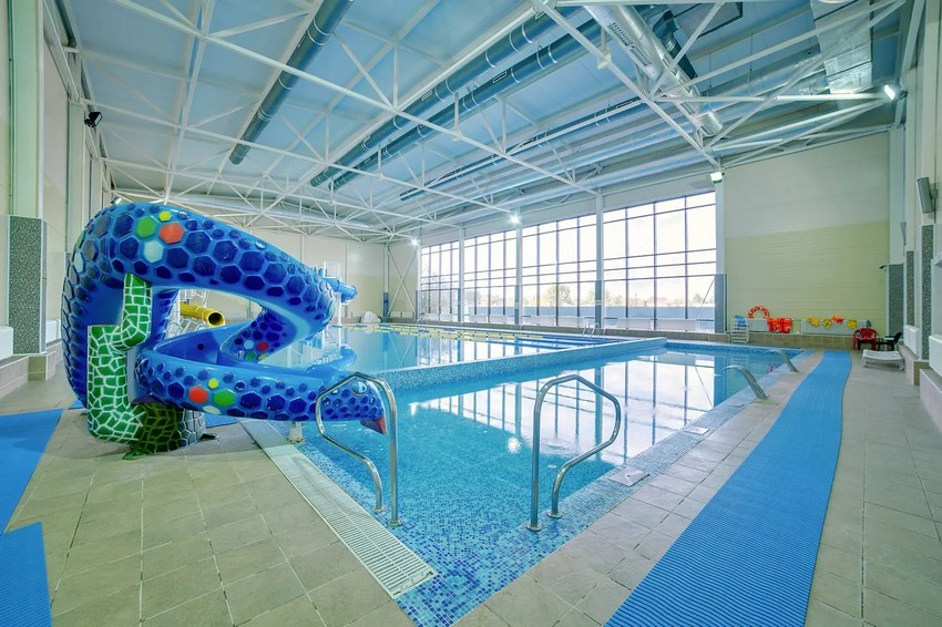 Бассейн не очень понравился, были осенью, внутри как-то холодновато, приходилось часто бегать в сауну греться. Да и ремонт там сделать бы не помешало. Из плюсов - есть небольшие горки, как в аквапарке, дети с удовольствием скатывались. Правда работала только одна и одна еще для малышей в лягушатнике.