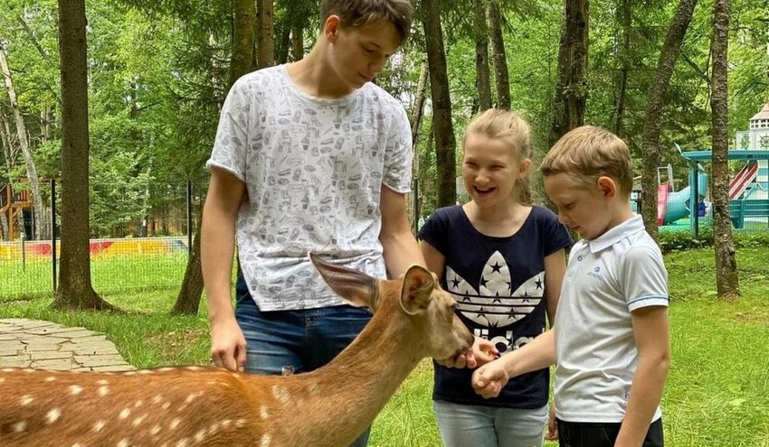 Детям доставит удовольствие посещение зоопарка, батутов, аттракционов, игры в футбол и волейбол, развлечения с аниматорами.