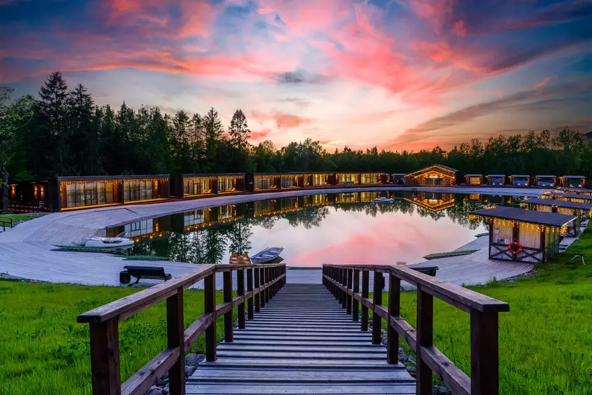 Гранд-отель «Аристократъ», находящийся в Костромской области (340 км от столицы), предлагает полноценный отдых с безупречным сервисом. Удачное размещение в лесной местности на побережье Волги помогает постояльцам расслабиться и отдохнуть от городской суеты. Для удобства гостей предлагаются стандартные и люксовые номера, коттеджи. Также доступен набирающий популярность вид отдыха – глэмпинг. Уютный домик с большой ванной, панорамными окнами и персональным отоплением позволят насладиться близостью природы без какого-либо дискомфорта.