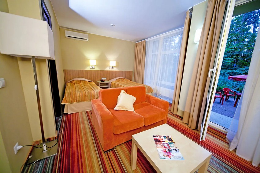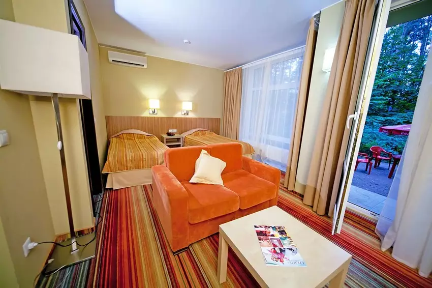 За те деньги, которые просят с отдыхающих, все достаточно неплохо. У нас на четверых был большой двухкомнатный номер с двумя телевизорами и ванными комнатами. Нигде до этого в таком мы еще не останавливались. Шведский стол небольшой, с голоду не умерли. Сладостей также не много. Кофемашина делает только два вида кофе: эспрессо и американо. Потом можно добавить молоко, стоит рядом отдельно.