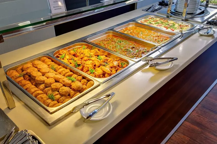 Как человек, дважды отдыхавший в этом отеле, могу сказать, что «шведский стол» просто отличный. Большой выбор блюд, много фруктов и сладостей. Для отдыхающих доступны два ресторана в разных частях территории отеля. Также в течение дня в холле можно бесплатно брать напитки, мороженое и печеньки.