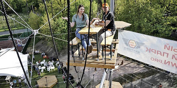 На ВДНХ сразу за павильоном №27 («Физкультура и спорт») начал работать самый большой в стране веревочный панда-парк – «Sky Town», который на сегодняшний день не имеет аналогов в России. В этой масштабной столичной зоне активного отдыха обычное занятие спортом превращается в захватывающее приключение.