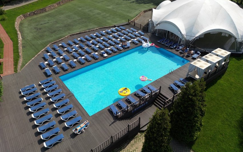 • 25-метровый бассейн на открытом воздухе с летней зоной отдыха