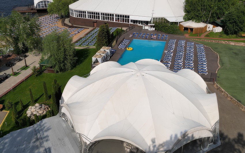 На территории клуба, находящегося рядом с живописным Серебряным бором, гостей ждут четыре бассейна, два из которых с подогревом и расположены на открытом воздухе, позволяя наслаждаться плаванием круглый год.