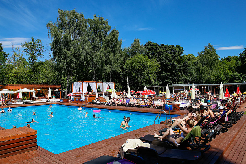 В центре Москвы, на территории спортивного комплекса «Лужники», расположен открытый плавательный комплекс, который работает с мая по сентябрь. Здесь вы можете не только поплавать под открытым небом, но и насладиться отдыхом на свежем воздухе, ощутив атмосферу настоящего курорта.