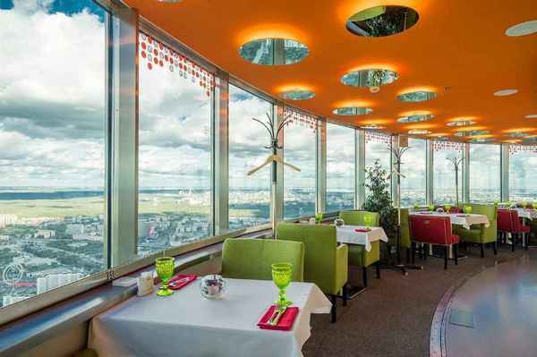 Чтобы посетители получили максимум впечатлений, создатели ресторана разработали уникальный вращающийся пол. Примерно за 40 минут пол совершает полный оборот вокруг своей оси. Не выходя из-за столов, гости видят все районы Москвы.