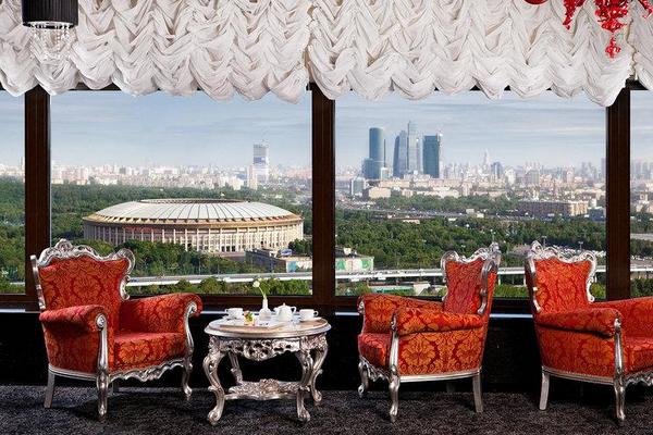 С 29-го этажа гостиницы «Украина» открывается невероятный вид на центр города: арбатские переулки, извилистую Москву-реку, древний Кремль и футуристический «Москва-Сити».