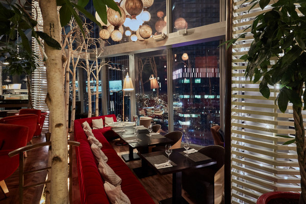 Ресторан с полномасштабным стеклянным куполом: по сути дела, посетители находятся в доме из стекла. Extra Lounge находится на 20-ом этаже элитного московского отеля «Корстон». Отсюда открывается потрясающий вид на «Лужники», «Москва-Сити», сталинские высотки, Храм Христа Спасителя. Особенно красив вид ночью, на рассвете, закате, во время городских праздников, когда небо освещают вспышки салютов.