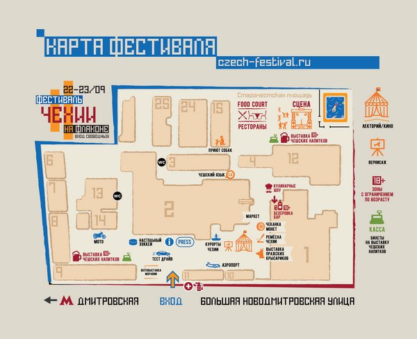 Одной из центральных зон станет чешская гастрономия, в том числе кулинарные мастер-классы от шеф-поваров лучших чешских ресторанов. Отдельно стоит отметить мастер-классы от Петра Коларжика - шеф-повара Посольства Чешской Республики в Москве. На фуд-корте Фестиваля можно будет попробовать все главные специалитеты чешской кухни - ароматные трдельники, кнедлики, драники, домашние колбаски и, разумеется, национальные напитки от лучших чешских производителей. Продажа билетов на Выставку чешских напитков (18+) доступна на сайте Фестиваля http://czech-festival.ru/, а также в кассах в дни проведения Фестиваля 22-23 сентября 2018 года, с 12:00 до 20:00. Количество билетов ограничено. Также оба дня на мероприятии будет работать Бехеровка бар, где можно будет насладиться травяным вкусом исторического чешского напитка, производящегося в Карловых Варах.