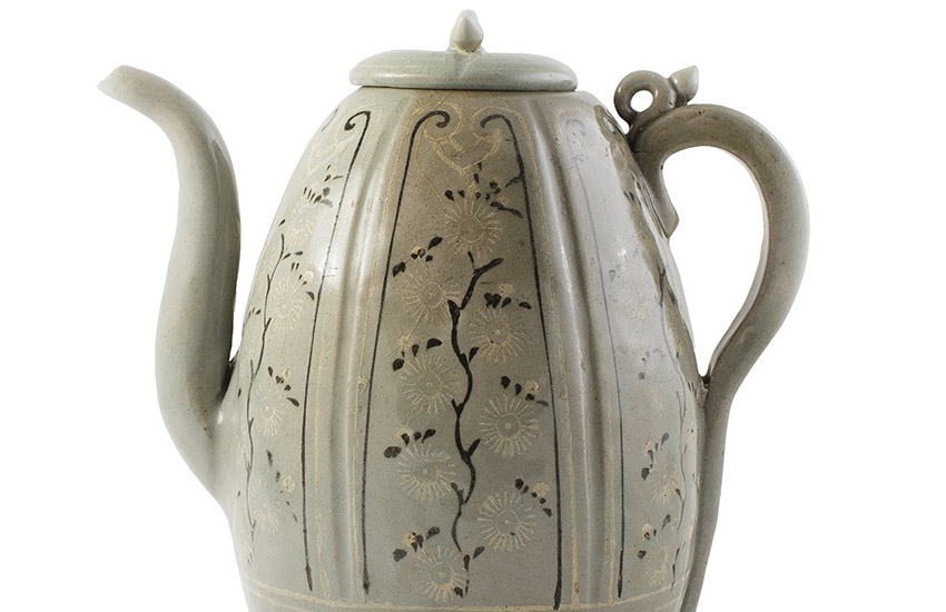 Одно из самых ярких направлений корейского искусства – керамика. Особенно выделяется период Корё (918–1392), когда мастера создавали знаменитые селадоновые изделия. Их покрывали глазурью светло-зелёного или голубовато-серого оттенка, изысканной по цвету и прозрачности. Формы часто отсылали к природным объектам – фруктам, цветам, листьям. Однако главное изобретение этого времени – техника инкрустации сангам. Она позволяла создавать на поверхности керамики сложные узоры, заполняемые разноцветной глиной, которые после обжига выглядели как тонкая резьба под стеклом.