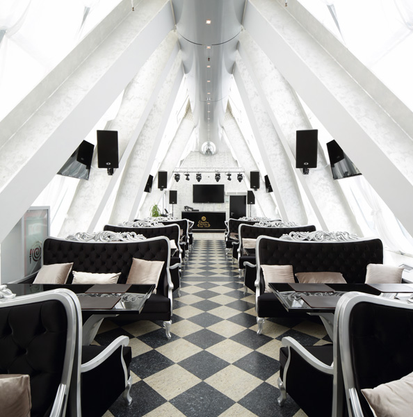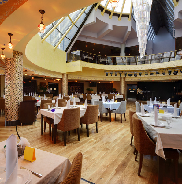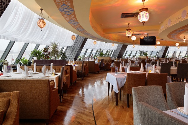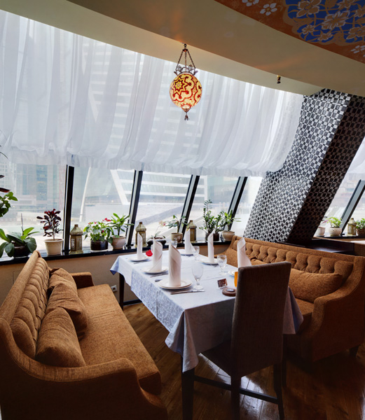 Ресторан занимает три этажа торгово-развлекательного комплекса «Багратион». Здесь есть и банкетный зал на 350 персон, и общий восточный зал вместительностью 200 человек, и VIP-зал с караоке, видом на Москву-реку, и сцену, периодически появляющуюся на площади.