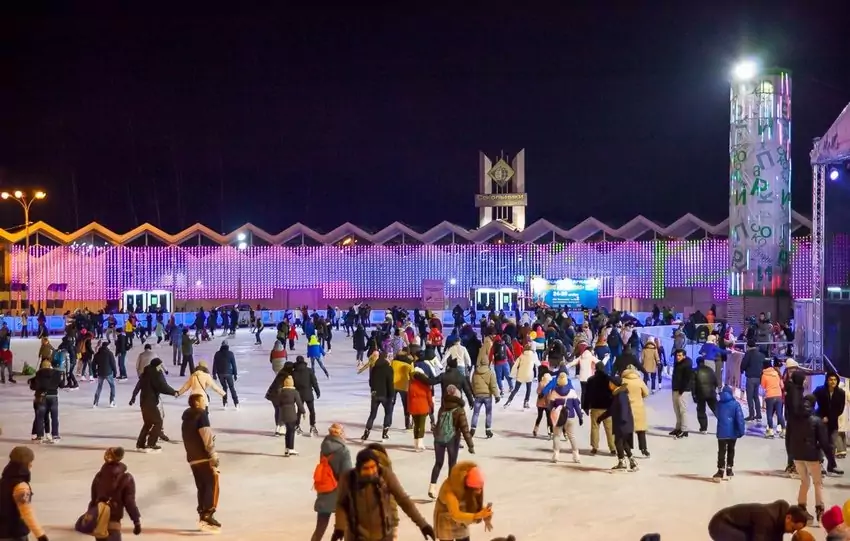 Каток находится на Фестивальной площади, сюда ежедневно приходят сотни любителей активного отдыха.