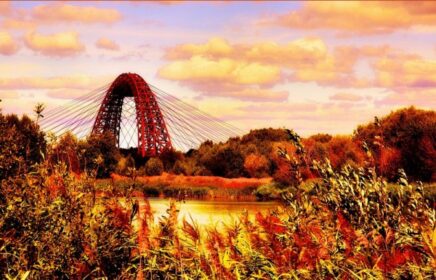 Видны оживленные артерии железнодорожного, Андреевского и Крымского мостов. Урбанистическую картину разбавляет причудливая архитектура двухголового дома на Фрунзенской набережной. Среди домов-книг Нового Арбата возвышается Останкинская телебашня. Левее – золото куполов храма Христа Спасителя, чуть справа – башни Кремля в ансамбле соборов. Еще правее темнеет силуэт памятника царю Петру I.