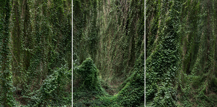 Копелло поднимает в своих работах и вопросы экологического равновесия. Один из повторяющихся образов - растительность, напоминающая плющ. На деле это пуэрария, или кудзу - инвазивное растение, завезенное в США из Азии в начале XX века. Изначально его воспринимали как символ дружбы, декоративное украшение. Но с течением времени лианы начали захватывать территории, подавляя местную флору и разрушая экосистемы.