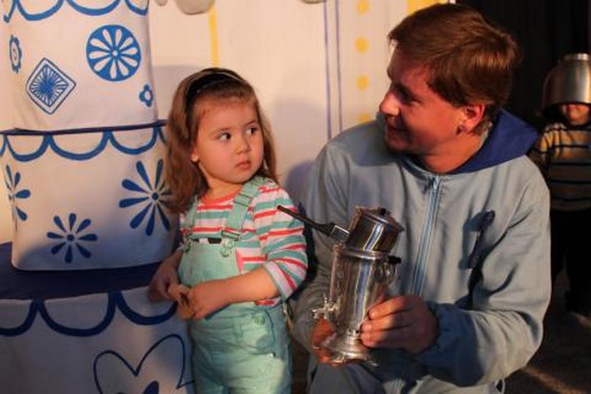 Ложки, крышки, кастрюли и прочая кухонная утварь – знакомые и очень привлекательные игрушки для малышей, а стихи Чуковского о Мухе-Цокотухе с их чудесным и очень органичным ритмом родители часто начинают читать своим детям уже в 7-8 месяцев. Мы решили совместить эти два открытия в спектакле «Муха-Цокотуха» – веселой истории для самых маленьких, которую два актера рассказывают во время чаепития на чудесной кухне. Герои Чуковского возникают прямо на глазах маленьких зрителей – актеры создают их из различной посуды и столовых приборов. Дети не только следят за чудесным появлением героев из самых неожиданных мест (например, муха появляется из огромной чашки, которая до этого служила шляпкой героини), но и принимают участие в спектакле – прогоняют паука, находят комара и создают целый оркестр, который играет на свадьбе Мухи.