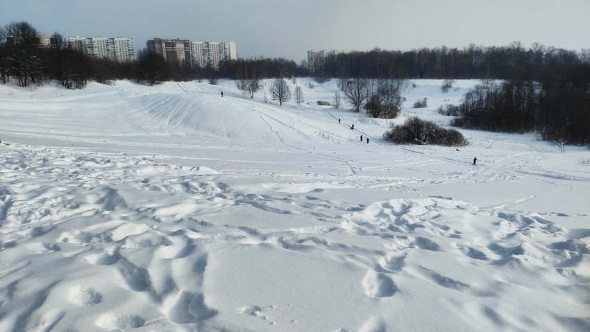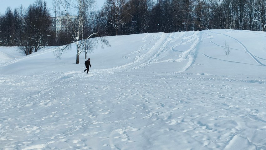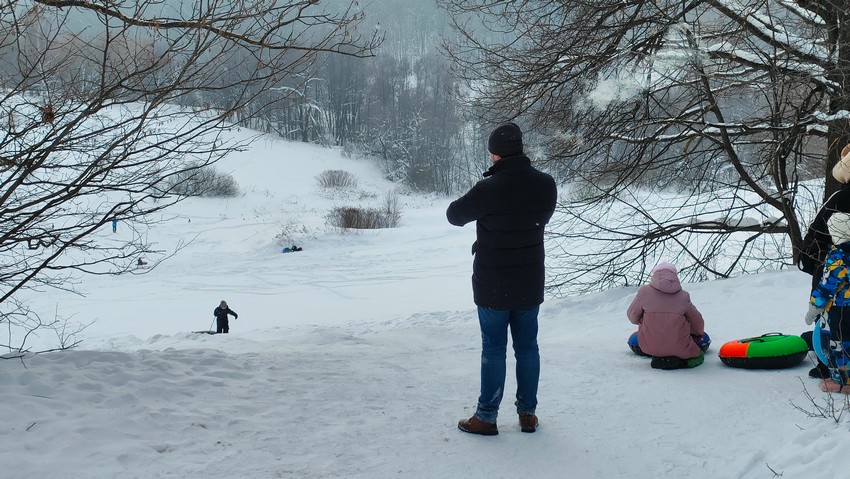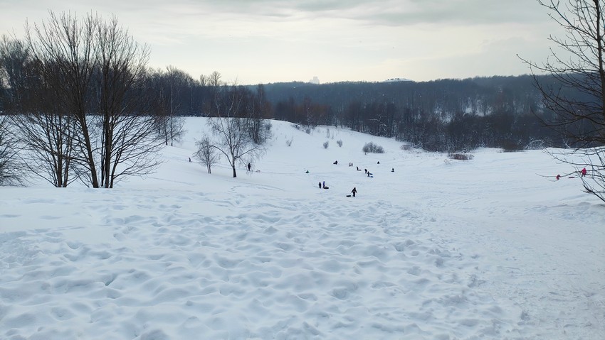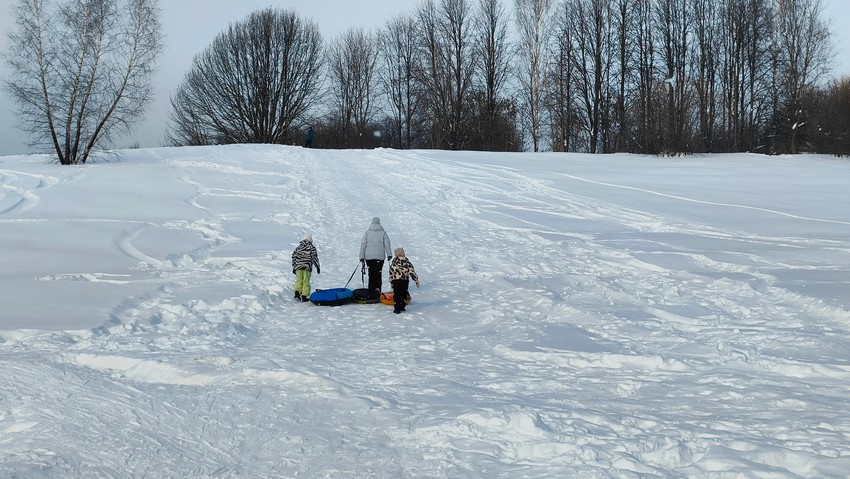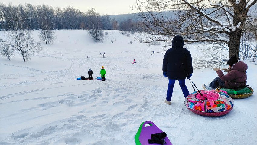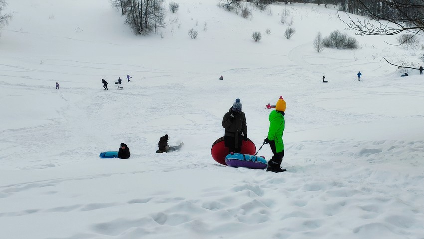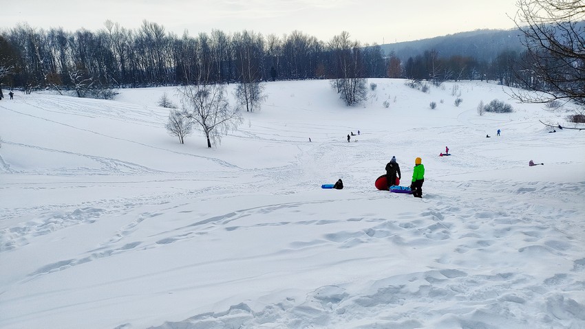 В декабре, когда было мало снега, кататься с горки было не очень приятно, ватрушка просто не ехала. Сейчас уже с этим проблем нет, т.к. снега намело достаточно.