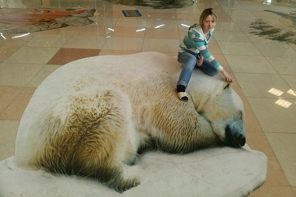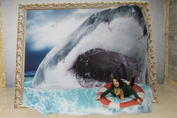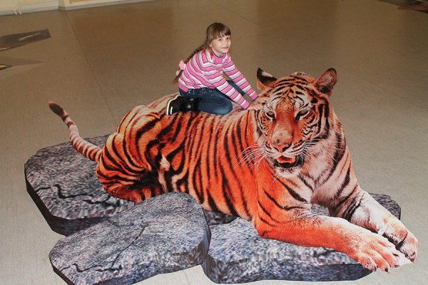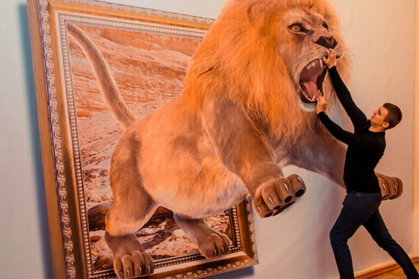 На втором этаже торгового центра «ВДНХ» в рамках проходящей выставки «3D воображариум» все желающие могут побороться с огромным львом, покормить жирафа, посидеть на спящем белом медведе, поздороваться за руку с Халком, перенестись в эпицентр торнадо или искупаться в деньгах, забраться на крышу многоэтажки, оседлать тигра и мн. др.