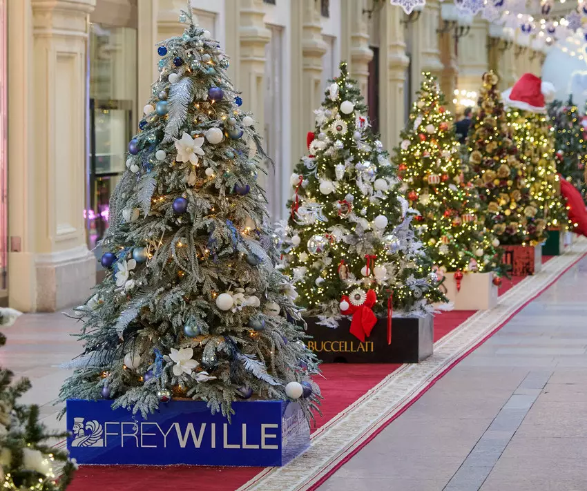 В центре столицы гостей и жителей мегаполиса ждет праздничная экспозиция «Новогодние ёлки в ГУМе на Красной площади». Старейший магазин украсили в лучших традициях Нового Года. Главная елка наряжена в любимой российской стилистике «гжель», а центральная галерея легендарного торгового центра Москвы превратилась в волшебный лес – стройными рядами здесь разместились сказочные ели, оформленные дизайнерами в самых разнообразных стилях.