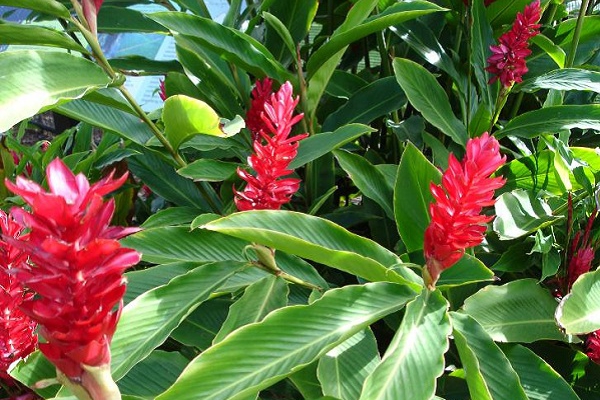 В правом и центральном залах оранжереи растут кофе, жасмин, розмарин, различные виды эвкалипта, фикусов и драцены, душица, пеларгония, мята, имбирь, лавр, кардамон, фейхоа, олеандр, евгения миртолистная и пр.