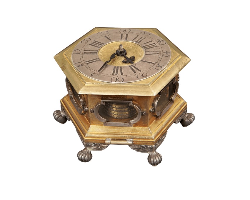 Особого внимания заслуживает уникальный экспонат - часы-диптих, изготовленные в 1662 году из слоновой кости мастером Альбрехтом Карнером. Это не только часы, но и компас. Часы нужно положить на ровную горизонтальную поверхность и ориентировать их по встроенному компасу так, чтобы гномон (в данном случае это веревочка) указывал на север. Он отбросит тень на основной циферблат и подскажет время.