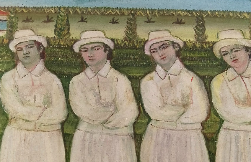 Еще одной интересной находкой экспозиции стала картина Валентины Черепниной (1975–2021) «Очередь в кассу театра». Это полотно из коллекции Общественного фонда наивного искусства «Остров Тарабаров» (собрание Сергея Тарабарова и Евгении Черепниной) представляет собой живую жанровую сцену. Художнице удалось создать образ людской толпы, полной самобытных характеров. Каждый персонаж здесь - индивидуальность, и, глядя на эту очередь в театральную кассу, зритель невольно вспоминает собственный опыт предвкушения встречи с искусством.